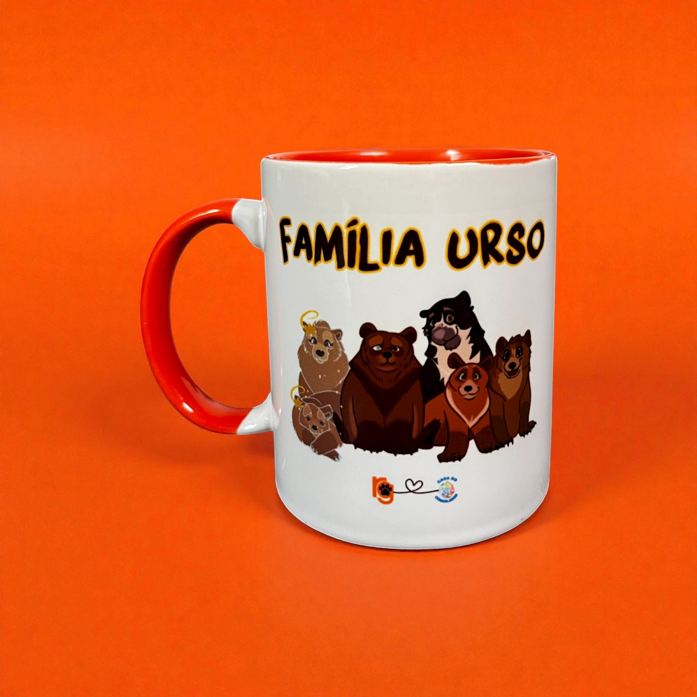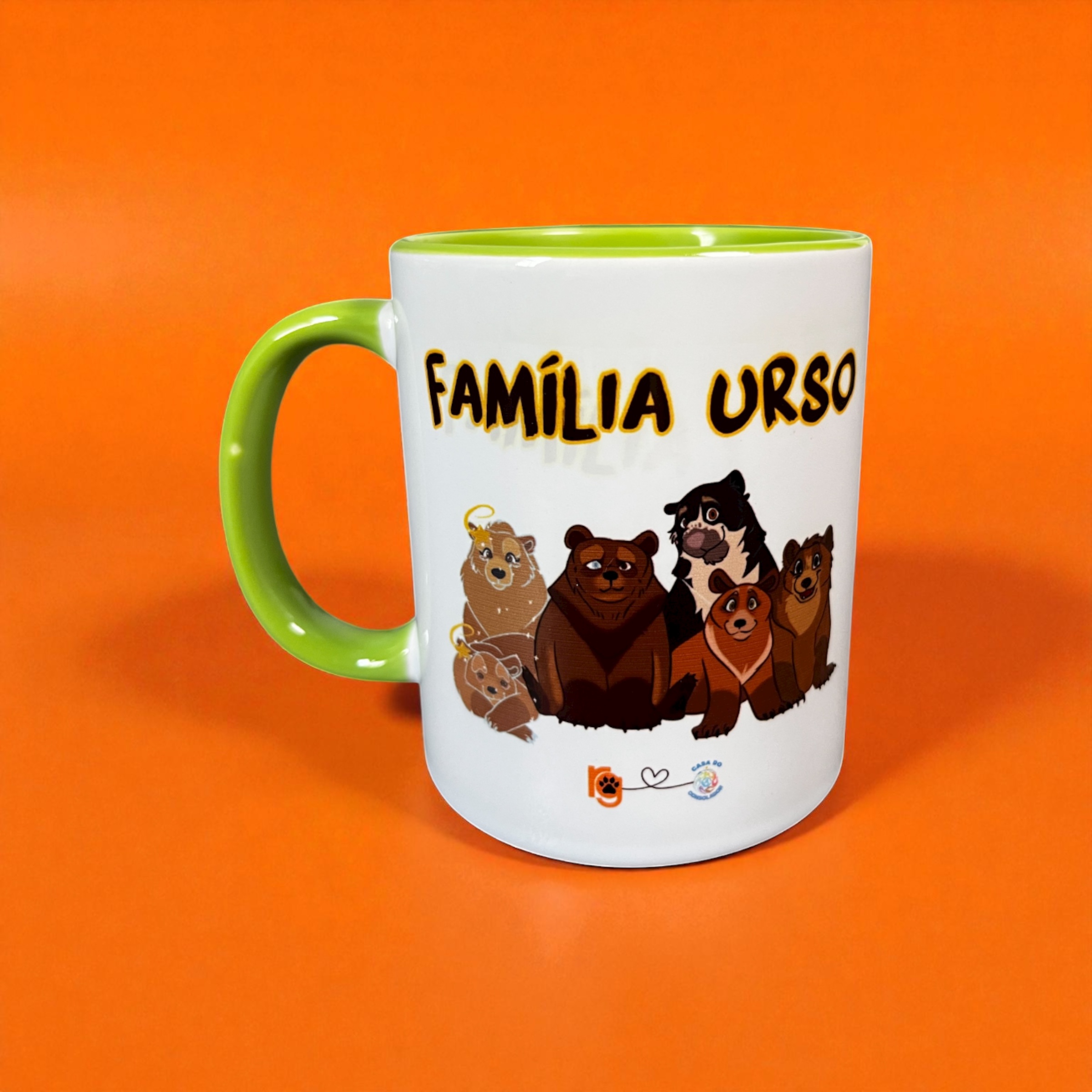Linda caneca em cerâmica com a ilustração dos amados ursinhos acolhidos no Santuário – Luz Rowena, Luz Mizar, Verrú, Durga, Jayarama, Yahrann e a ilustração do logo do Rancho estilizado – RG com uma patinha.