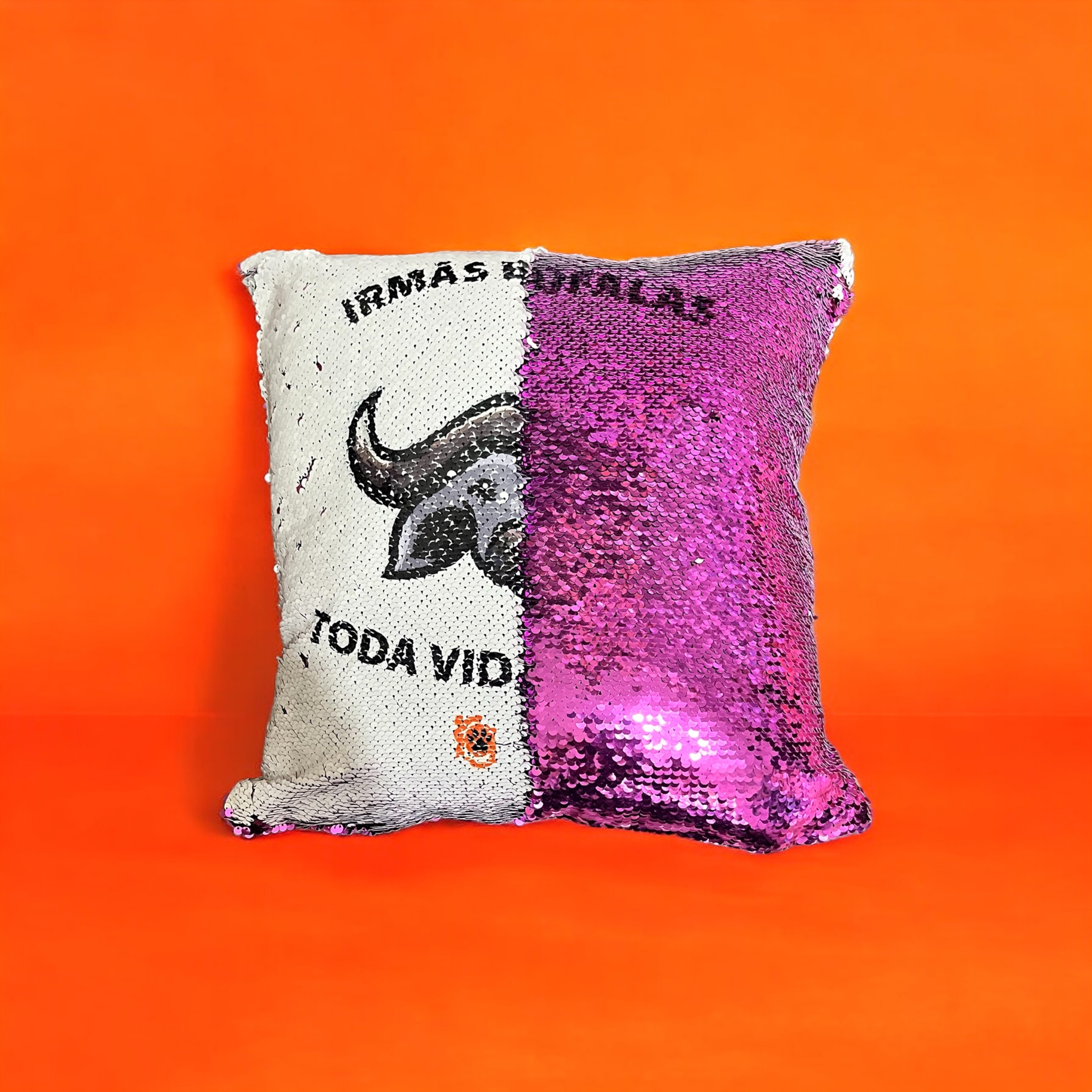 De um lado a imagem estilizada da búfala, de outro a cor escolhida por você (Branca, Prata, Preta, Rosa)