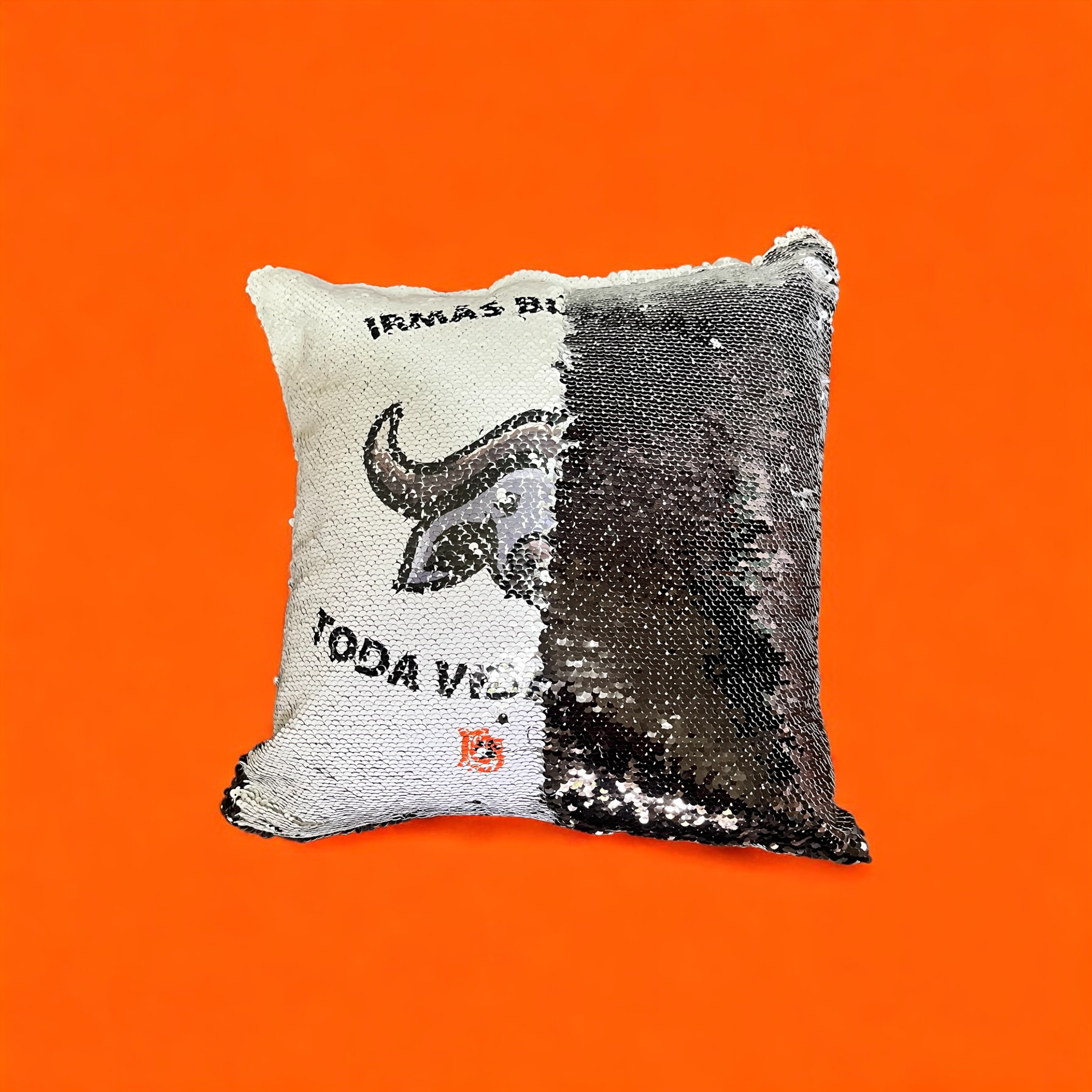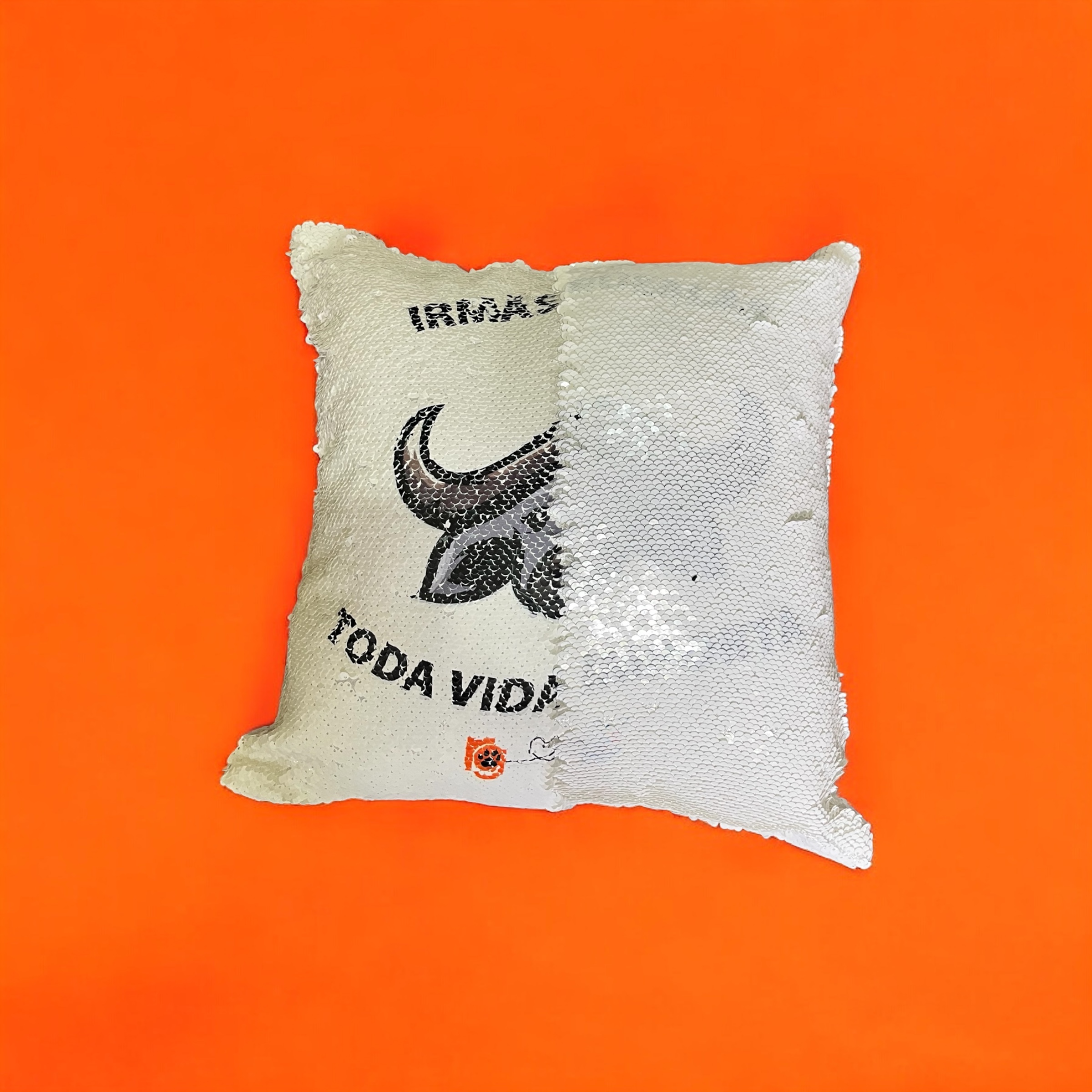 - 100% poliéster com lantejoulas dupla face em um dos lados.